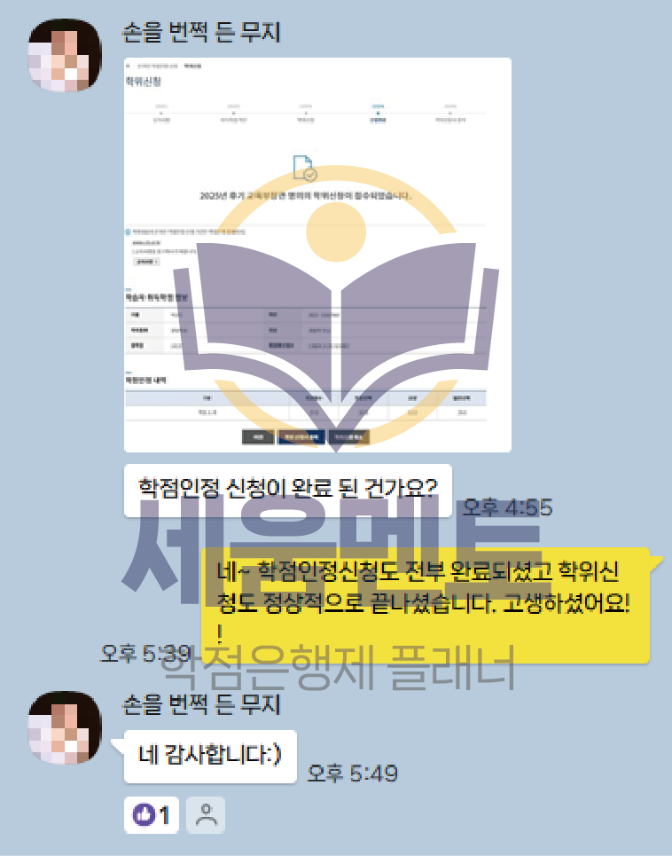경영학 학사학위 취득을 이번 2025년도 3분기에 학위신청까지 완료하셨습니다.